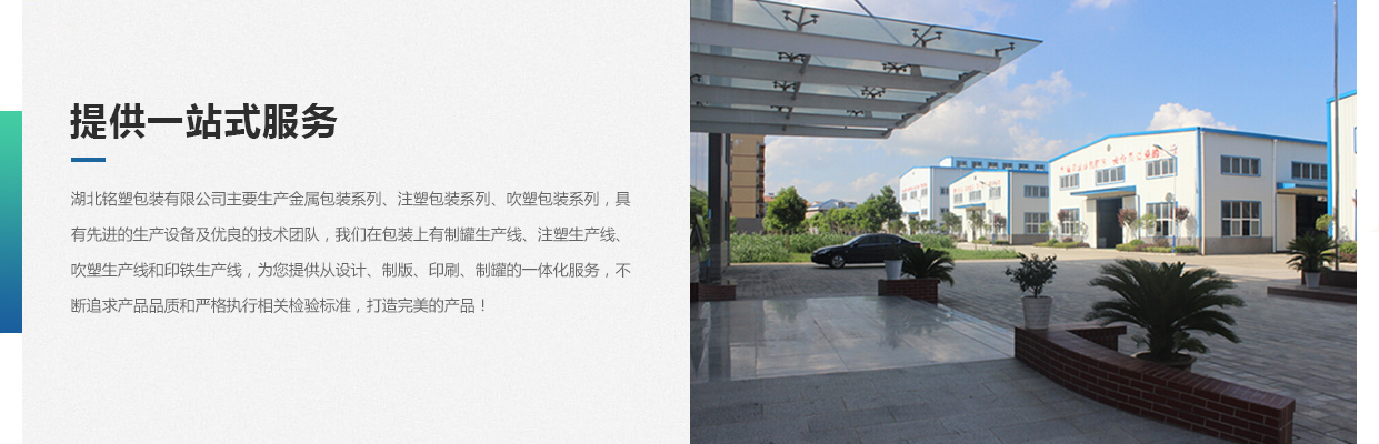 湖北銘塑包裝有限公司一家集研發(fā)、生產(chǎn)、銷(xiāo)售于一體的較優(yōu)秀民營(yíng)企業(yè),技術(shù)力量雄厚,產(chǎn)品質(zhì)量可靠。位于交通暢順,百業(yè)興旺、經(jīng)濟(jì)富裕、政策開(kāi)放的孝感開(kāi)發(fā)區(qū)域。我們企業(yè)的營(yíng)銷(xiāo)戰(zhàn)略是以建筑為土壤,以產(chǎn)品為種子,以質(zhì)量為肥料,讓綠色鋪滿(mǎn)全球。憑借多年來(lái)的行業(yè)經(jīng)驗(yàn),公司不斷進(jìn)行創(chuàng)新和研發(fā),為市場(chǎng)提供更廣泛的產(chǎn)品應(yīng)用領(lǐng)域和更好環(huán)保節(jié)能產(chǎn)品,為國(guó)家能源環(huán)保戰(zhàn)略和可持續(xù)發(fā)展戰(zhàn)略作出應(yīng)有的貢獻(xiàn)。 湖北銘塑包裝有限公司主要生產(chǎn)金屬包裝系列、注塑包裝系列、吹塑包裝系列,具有先進(jìn)的生產(chǎn)設(shè)備及優(yōu)良的技術(shù)團(tuán)隊(duì),我們?cè)诎b上有制罐生產(chǎn)線(xiàn)、注塑生產(chǎn)線(xiàn)、吹塑生產(chǎn)線(xiàn)和印鐵生產(chǎn)線(xiàn),為您提供從設(shè)計(jì)、制版、印刷、制罐的一體化服務(wù),不斷追求產(chǎn)品品質(zhì)和嚴(yán)格執(zhí)行相關(guān)檢驗(yàn)標(biāo)準(zhǔn),打造更好的產(chǎn)品!